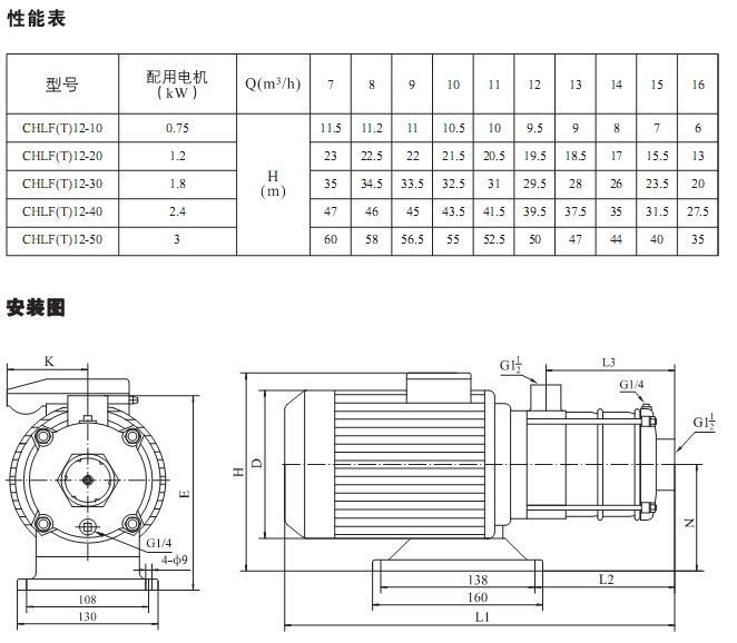 產(chǎn)品介紹 CHLF12-20LSWSC臥式多級離心泵非自吸離心泵是渤泉泵業(yè)制造有限公司制造的主導(dǎo)產(chǎn)品,配加長軸電機(jī)采用了免修機(jī)械密封,緊湊式結(jié)構(gòu)使泵尺寸很小,軸向入口和徑向出口。輕型段式多級離心泵的過流部件均采用不銹鋼材料(304或316)制成,輕型不銹鋼多級離心泵具有低噪音,耐輕腐蝕,外形美觀、體積小、重量輕、使用壽命長等特點(diǎn),不同材質(zhì)的硬質(zhì)合金密封,保證了不同介質(zhì)輸送均無泄漏;噪音低:兩個(gè)低噪音軸承下的水泵,運(yùn)轉(zhuǎn)平穩(wěn),除電機(jī)微弱聲響,基本無噪聲;故障率低:結(jié)構(gòu)簡單合理,整機(jī)無故障工作時(shí)間大大提高。采用國內(nèi)優(yōu)秀水力模型優(yōu)化設(shè)計(jì)而成,是理想的新一代高效節(jié)能輕型臥式多級離心泵。采用了免修機(jī)械密封。輕型段式多級離心泵的過流部件均采用不銹鋼材料(304或316)制成,具有低噪音,耐輕腐蝕,外形美觀、體積小、重量輕、使用壽命長等特點(diǎn)。 二、應(yīng)用范圍: CHLF12-20LSWSC臥式多級離心泵主要用于家庭型中央空調(diào)循環(huán)及工業(yè)上液體的傳輸。如脫礦物質(zhì)水、軟水、凈化系統(tǒng)、輕油等的循環(huán)和增壓。 1)小型中央空調(diào)循環(huán) 2)冷卻系統(tǒng) 3)工業(yè)清洗 4)水處理(水的凈化) 5)水產(chǎn)養(yǎng)殖 6)施肥/計(jì)量系統(tǒng) 7)環(huán)境應(yīng)用 三、工作條件: 稀薄、干凈、不凝、不爆炸、不含固體顆?;蚶w維的液體。 液體溫度: 常溫型-15℃至+70℃ 熱水型+70℃至+110℃ 最大環(huán)境溫度:+40℃ 最大運(yùn)作壓力:10巴 最大進(jìn)口壓力受最大運(yùn)作壓力限制 介質(zhì)酸堿性:PH4~9 四、輸送液體: 1、稀薄、清潔、不含固體顆?;蚶w維的非易燃易爆液體。 2、泵可以輸送諸如礦泉水、軟化水、純水、清油和其它輕化工介質(zhì)。 3、當(dāng)輸送液體的密度或粘度大于水,如需要,必須配用大功率電機(jī)。 4、泵是否適用于某一特定液體由多種因素決定,其中最重要的是氯含量、PH值、溫度和溶濟(jì)、油的含量等。 五、曲線條件: 下述條件適用于后面所示性能曲線。 1、所有曲線都基于電機(jī)在恒速2900rpm的測量值。 2、曲線容差符合ISO9906,附錄A。 3、測試采用20℃不含空氣的水,運(yùn)動(dòng)粘度為1mm2/s。 4、泵的使用參照加粗曲線的性能范圍,以防流量過小產(chǎn)生過熱和流量過大使電機(jī)過載等。 六、電機(jī): 輕型段式多級離心泵電機(jī)為全封閉,風(fēng)冷式二極電機(jī) 防護(hù)等級:IP55 絕緣等級:F 標(biāo)準(zhǔn)電壓, 50Hz: 1×220-240V 3×220-240V 380-415V ![]() ![]() 因產(chǎn)品生產(chǎn)批次、型號不同,產(chǎn)品圖片及安裝尺寸僅供參考,詳情可聯(lián)系我們的銷售人員了解更多CHLF12-20LSWSC臥式多級離心泵相關(guān)信息!