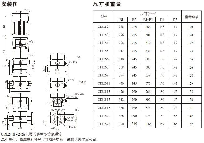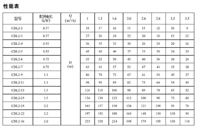產品介紹 QDLF2-220不銹鋼給水增壓泵是一種多功能產品,可以輸送從自來水到工業(yè)液體的各種不同介質,適應于不同溫度、流量和壓力范圍,CDL適用于無腐蝕性液體,CDLF適用于輕度腐蝕性液體。 水:水廠過濾與輸送、水廠分區(qū)送水、主管增壓、高層建筑增壓。 工業(yè)增壓:流程水系統(tǒng)、清洗系統(tǒng)、高壓沖洗系統(tǒng)、消防系統(tǒng)。 工業(yè)液體輸送:冷卻和空調系統(tǒng)、鍋爐給水和冷凝系統(tǒng)、機床配套、酸和堿。 水處理:超濾系統(tǒng)、反滲透系統(tǒng)、蒸餾系統(tǒng)、分離器、游泳池。 灌溉:農田灌溉、噴灌、滴灌。 運行條件 稀薄、干凈、非易燃易爆并不含固體顆?;蚶w維的液體。 液體溫度:常溫型 -15℃至+70℃ 熱水型 -15℃至+120℃ 環(huán)境溫度:最高+40℃ 海拔:最高1000m QDLF2-220不銹鋼給水增壓泵為安裝標準電機的非自吸式多級離心泵,電機軸通過泵頭用軸聯(lián)器直接與泵軸連接,拉桿螺栓將耐壓筒、過流部件固定在泵頭和進出水段之間,泵進出水口在泵底同一直線上;本泵可根據需要配置智能保護器,對泵干轉、缺相、過載等進行有效保護。 電機 電機為全封閉,風冷式二極標準電機。 防護等級:IP55 絕緣等級:F 標準電壓, 50Hz ![]() ![]() ![]() 因產品生產批次、型號不同,產品圖片及安裝尺寸僅供參考,詳情可聯(lián)系我們的銷售人員了解更多QDLF2-220不銹鋼給水增壓泵相關信息!