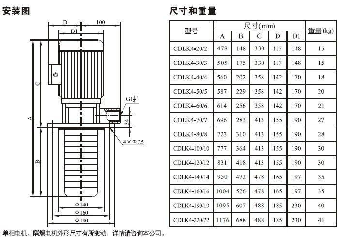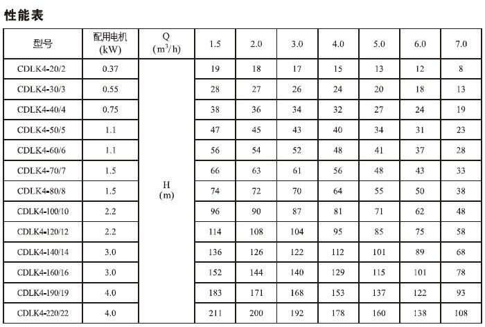產(chǎn)品介紹 一、概述 CDLKF4-50/5液下式多級離心泵為安裝標準電機 為滿足水槽或容器的安裝深度,可安裝空腔體來改變泵本身的長度,不同的級數(shù)長度見尺寸和重量表和可供產(chǎn)品范圍表。 二、應用范圍 CDLKF4-50/5液下式多級離心泵用于輸送機床冷卻液、潤滑液、冷凝水輸送、工業(yè)清洗設備和其它適合浸入式泵使用的場合,適合于不同溫度、流量和壓力范圍,CDLK適用于無腐蝕性液體,CDLKF適于輕度腐蝕性液體。 具體用于電火花、車床、磨床、加工中心、冷卻裝置、工業(yè)清洗設備、過濾系統(tǒng)等。 三、電機 電機為全封閉,風冷式二極標準電機。 防護等級:IP55 絕緣等級:F 標準電壓:50HZ:1*220-230/240V 3*200/346V 3*220-240/380-415V 3*220-225/380-440V 其他電壓的電機按要求可供。 單相電壓從0.37-2.2kw可供。 四、運行條件 CDLKF4-50/5液下式多級離心泵適用于稀薄、干凈、不含固體顆粒和纖維的非易爆液體,可輸送水及冷卻用水溶液和切割潤滑液。 液體溫度:常溫型-15℃~+70℃ 熱水型+70℃~+120℃ ![]() ![]() 因產(chǎn)品生產(chǎn)批次、型號不同,產(chǎn)品圖片及安裝尺寸僅供參考,詳情可聯(lián)系我們的銷售人員了解更多CDLKF4-50/5液下式多級離心泵相關信息!