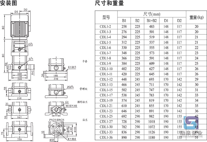 產(chǎn)品介紹 CDLF1-4FSWSC 不銹鋼立式循環(huán)泵是一種多功能產(chǎn)品,可以輸送從自來水到工業(yè)液體的各種不同介質(zhì),適應(yīng)于不同溫度、流量和壓力范圍,CDL不銹鋼多級泵適用于無腐蝕性液體,CDLF適用于輕度腐蝕性液體。 水:水廠過濾與輸送、水廠分區(qū)送水、主管增壓、高層建筑增壓。 工業(yè)增壓:流程水系統(tǒng)、清洗系統(tǒng)、高壓沖洗系統(tǒng)、消防系統(tǒng)。 工業(yè)液體輸送:冷卻和空調(diào)系統(tǒng)、鍋爐給水和冷凝系統(tǒng)、機(jī)床配套、酸和堿。 水處理:超濾系統(tǒng)、反滲透系統(tǒng)、蒸餾系統(tǒng)、分離器、游泳池。 灌溉:農(nóng)田灌溉、噴灌、滴灌。 運行條件 稀薄、干凈、非易燃易爆并不含固體顆粒或纖維的液體。 液體溫度:常溫型 -15℃至+70℃ 熱水型 -15℃至+120℃ 環(huán)境溫度:最高+40℃ 海拔:最高1000m CDLF1-4FSWSC 不銹鋼立式循環(huán)泵為安裝標(biāo)準(zhǔn)電機(jī)的非自吸式多級離心泵,電機(jī)軸通過泵頭用軸聯(lián)器直接與泵軸連接,拉桿螺栓將耐壓筒、過流部件固定在泵頭和進(jìn)出水段之間,泵進(jìn)出水口在泵底同一直線上;本泵可根據(jù)需要配置智能保護(hù)器,對泵干轉(zhuǎn)、缺相、過載等進(jìn)行有效保護(hù)。 電機(jī) 電機(jī)為全封閉,風(fēng)冷式二極標(biāo)準(zhǔn)電機(jī)。 防護(hù)等級:IP55 絕緣等級:F 標(biāo)準(zhǔn)電壓, 50Hz ![]() 因產(chǎn)品生產(chǎn)批次、型號不同,產(chǎn)品圖片及安裝尺寸僅供參考,詳情可聯(lián)系我們的銷售人員了解更多CDLF1-4FSWSC 不銹鋼立式循環(huán)泵相關(guān)信息!