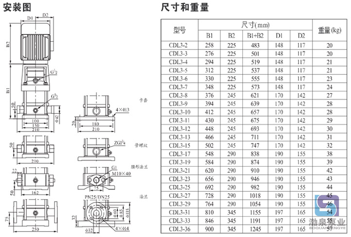 產(chǎn)品介紹 CDLF3-10FSWSC 立式管道多級(jí)離心泵是一種多功能產(chǎn)品,可以輸送從自來水到工業(yè)液體的各種不同介質(zhì),適應(yīng)于不同溫度、流量和壓力范圍,CDL不銹鋼多級(jí)泵適用于無腐蝕性液體,CDLF適用于輕度腐蝕性液體。 水:水廠過濾與輸送、水廠分區(qū)送水、主管增壓、高層建筑增壓。 工業(yè)增壓:流程水系統(tǒng)、清洗系統(tǒng)、高壓沖洗系統(tǒng)、消防系統(tǒng)。 工業(yè)液體輸送:冷卻和空調(diào)系統(tǒng)、鍋爐給水和冷凝系統(tǒng)、機(jī)床配套、酸和堿。 水處理:超濾系統(tǒng)、反滲透系統(tǒng)、蒸餾系統(tǒng)、分離器、游泳池。 灌溉:農(nóng)田灌溉、噴灌、滴灌。 運(yùn)行條件 稀薄、干凈、非易燃易爆并不含固體顆?;蚶w維的液體。 液體溫度:常溫型 -15℃至+70℃ 熱水型 -15℃至+120℃ 環(huán)境溫度:最高+40℃ 海拔:最高1000m CDLF3-10FSWSC 立式管道多級(jí)離心泵為安裝標(biāo)準(zhǔn)電機(jī)的非自吸式多級(jí)離心泵,電機(jī)軸通過泵頭用軸聯(lián)器直接與泵軸連接,拉桿螺栓將耐壓筒、過流部件固定在泵頭和進(jìn)出水段之間,泵進(jìn)出水口在泵底同一直線上;本泵可根據(jù)需要配置智能保護(hù)器,對(duì)泵干轉(zhuǎn)、缺相、過載等進(jìn)行有效保護(hù)。 電機(jī) 電機(jī)為全封閉,風(fēng)冷式二極標(biāo)準(zhǔn)電機(jī)。 防護(hù)等級(jí):IP55 絕緣等級(jí):F 標(biāo)準(zhǔn)電壓, 50Hz ![]() 因產(chǎn)品生產(chǎn)批次、型號(hào)不同,產(chǎn)品圖片及安裝尺寸僅供參考,詳情可聯(lián)系我們的銷售人員了解更多CDLF3-10FSWSC 立式管道多級(jí)離心泵相關(guān)信息!