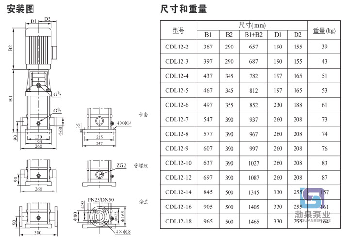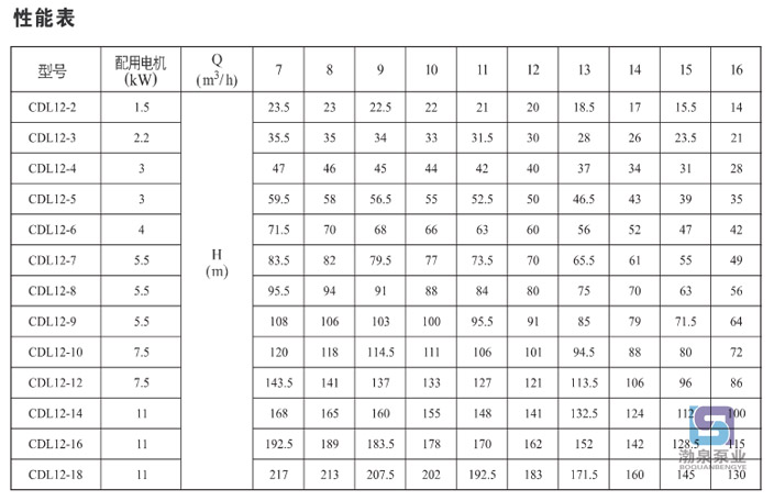 產品介紹 CDLF12-3FSWSC 輕型立式多級離心水泵是一種多功能產品,可以輸送從自來水到工業液體的各種不同介質,CDLF12-3FSWSC 輕型立式多級離心水泵適應于不同溫度、流量和壓力范圍,CDL不銹鋼多級泵適用于無腐蝕性液體,CDLF適用于輕度腐蝕性液體。 水:水廠過濾與輸送、水廠分區送水、主管增壓、高層建筑增壓。 工業增壓:流程水系統、清洗系統、高壓沖洗系統、消防系統。 工業液體輸送:冷卻和空調系統、鍋爐給水和冷凝系統、機床配套、酸和堿。 水處理:超濾系統、反滲透系統、蒸餾系統、分離器、游泳池。 灌溉:農田灌溉、噴灌、滴灌。 運行條件 稀薄、干凈、非易燃易爆并不含固體顆粒或纖維的液體。 液體溫度:常溫型 -15℃至+70℃ 熱水型 -15℃至+120℃ 環境溫度:最高+40℃ 海拔:最高1000m CDLF12-3FSWSC 輕型立式多級離心水泵為安裝標準電機的非自吸式多級離心泵,電機軸通過泵頭用軸聯器直接與泵軸連接,拉桿螺栓將耐壓筒、過流部件固定在泵頭和進出水段之間,泵進出水口在泵底同一直線上;本泵可根據需要配置智能保護器,對泵干轉、缺相、過載等進行有效保護。 電機 電機為全封閉,風冷式二極標準電機。 防護等級:IP55 絕緣等級:F 標準電壓, 50Hz 因產品生產批次、型號不同,產品圖片及安裝尺寸僅供參考,詳情可聯系我們的銷售人員了解更多CDLF12-3FSWSC 輕型立式多級離心水泵相關信息!
