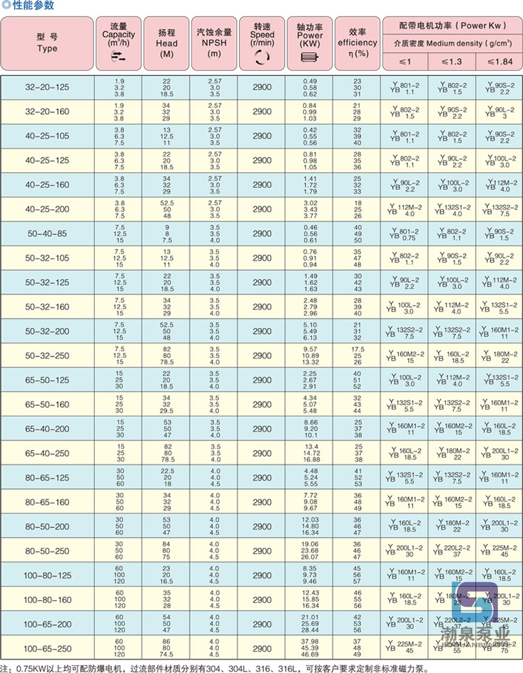 產(chǎn)品介紹 CQB32-20-160 不銹鋼磁力驅(qū)動泵(簡稱磁力泵),是應(yīng)用現(xiàn)代磁力學原理,利用永磁體的磁力傳動實現(xiàn)扭矩的無接觸傳遞的一種新型泵,也就是電機帶動外轉(zhuǎn)子(即外磁鋼)總成旋轉(zhuǎn)時,通過磁場的作用磁力線穿過隔離套帶動內(nèi)轉(zhuǎn)子(即內(nèi)磁鋼)總成和葉輪同步旋轉(zhuǎn),由于介質(zhì)封閉在靜止的隔離套內(nèi),從而達到無泄漏抽送介質(zhì)的目的,解決了機械傳動泵的軸封泄漏,而設(shè)計的全密封、無泄漏、無污染、高效節(jié)能的新型工業(yè)用泵,性能達到國際標準、可替代價格昂貴進口的化工泵。 CQB32-20-160 不銹鋼磁力驅(qū)動泵產(chǎn)品優(yōu)點: 1.泵體、葉輪和泵蓋采用CFD計算機流體力學設(shè)計水力部件進行模塊設(shè)計和精密鑄造。具有流道寬、效率高、汽蝕余量性能好、徑向力小、流道光潔和互換性好等特點; 2.磁鐵選用鐵氧體磁體、釹鐵硼和釤鈷,具有良好的磁性,耐高溫,不退磁;它的磁能積為28兆高斯奧特斯,可耐受溫度的極限是350℃,在常規(guī)冷卻的條件下,限定其最高使用溫度為260℃; 3.軸套、滑動軸承采用高耐磨的碳化硅、石墨、四氟等材料,并設(shè)置了潤滑槽,有效地保證泵的使用壽命; 4.無泄漏,所有密封點采用封閉式靜密封密封,通過磁性聯(lián)軸器驅(qū)動,不需要氮氣密封,安全、經(jīng)濟和高效,解決了介質(zhì)泄漏; 5.無需獨立潤滑和冷卻水,降低了能耗; 6.國際標準軸聯(lián)后拉式設(shè)計,無需拆卸管道,維修方便; 7.臥式安裝,振動小,噪音低,運行平穩(wěn),國際標準設(shè)計,可與標準化工離心泵互換,方便用戶更換和使用; 8.由聯(lián)軸器傳動變成同步拖動,不存在接觸和摩擦。功耗小、效率高,且具有阻尼減振作用,減少了電動機振動對泵的影響和泵發(fā)生氣蝕振動時對電動機的影響; 產(chǎn)品用途 CQB32-20-160 不銹鋼磁力驅(qū)動泵廣泛應(yīng)用于石油、化工、制堿、冶煉、稀土、農(nóng)藥、染料、醫(yī)藥、造紙、電鍍、電解、無線電、化成箔、科研機構(gòu)、國防工業(yè)等生產(chǎn)流程中輸送腐蝕性液體,尤其適用于易燃、易爆、易揮發(fā)、有毒、高溫、強堿、有機容劑和貴重液體的輸送。 性能范圍:設(shè)計壓力:1.6-6.4Mpa、流量:2-1400m3/h、揚程:20-200m、功率:1.1-400kw 適用溫度:-30~120℃,采用新型材料耐溫可達-50~450℃; 注意事項:當介質(zhì)比重大于1.3mg/cm3時訂貨時應(yīng)說明,禁止空運轉(zhuǎn),禁止輸送含有顆?;蛴薪Y(jié)晶的介質(zhì)。 型號意義 ![]() ![]() 因產(chǎn)品生產(chǎn)批次、型號不同,產(chǎn)品圖片及安裝尺寸僅供參考,詳情可聯(lián)系我們的銷售人員了解更多CQB32-20-160 不銹鋼磁力驅(qū)動泵相關(guān)信息!