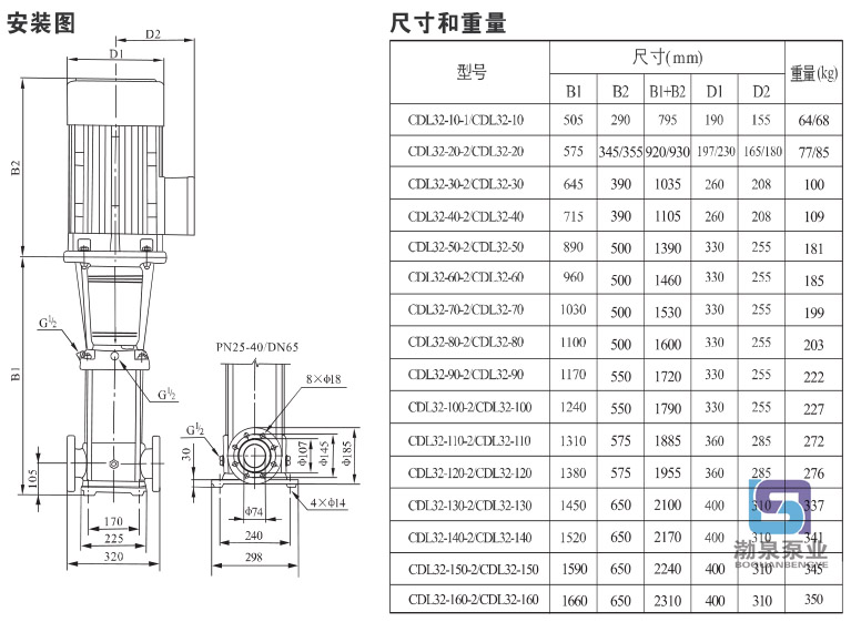 產品介紹 CDLF32-10FSWSC 不銹鋼輕型立式多級泵是一種多功能產品,可以輸送從自來水到工業液體的各種不同介質,CDLF32-10FSWSC 不銹鋼輕型立式多級泵適應于不同溫度、流量和壓力范圍,CDL不銹鋼多級泵適用于無腐蝕性液體,CDLF適用于輕度腐蝕性液體。 水:水廠過濾與輸送、水廠分區送水、主管增壓、高層建筑增壓。 工業增壓:流程水系統、清洗系統、高壓沖洗系統、消防系統。 工業液體輸送:冷卻和空調系統、鍋爐給水和冷凝系統、機床配套、酸和堿。 水處理:超濾系統、反滲透系統、蒸餾系統、分離器、游泳池。 灌溉:農田灌溉、噴灌、滴灌。 運行條件 稀薄、干凈、非易燃易爆并不含固體顆?;蚶w維的液體。 液體溫度:常溫型 -15℃至+70℃ 熱水型 -15℃至+120℃ 環境溫度:最高+40℃ 海拔:最高1000m CDLF32-10FSWSC 不銹鋼輕型立式多級泵為安裝標準電機的非自吸式多級離心泵,電機軸通過泵頭用軸聯器直接與泵軸連接,拉桿螺栓將耐壓筒、過流部件固定在泵頭和進出水段之間,泵進出水口在泵底同一直線上;本泵可根據需要配置智能保護器,對泵干轉、缺相、過載等進行有效保護。 電機 電機為全封閉,風冷式二極標準電機。 防護等級:IP55 絕緣等級:F 標準電壓, 50Hz ![]() 因產品生產批次、型號不同,產品圖片及安裝尺寸僅供參考,詳情可聯系我們的銷售人員了解更多CDLF32-10FSWSC 不銹鋼輕型立式多級泵相關信息!