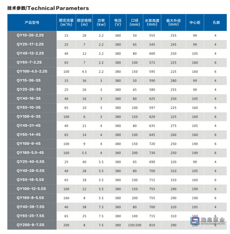 產(chǎn)品介紹 產(chǎn)品概述/Product Overview QY25-26-3S 耐腐蝕潛水電泵外殼及過流部件采用不銹鋼精密鑄造,具有衛(wèi)生、環(huán)保、耐腐蝕、外觀精美等特點。 產(chǎn)要特點:/Main Features 1、采用雙端面、單端面雙道機封為動密封,采用氟橡膠.0型圈為靜密封,密封更可靠。 2、采用F級絕緣電機,底部采用錐形軸承設(shè)計,增加水泵運轉(zhuǎn)的可靠性,提高了使用壽命。 3、高揚程泵采用浮動油囊結(jié)構(gòu).電泵溫度升高,油囊水下調(diào).以防溫度升高爆裂.調(diào)節(jié)內(nèi)外壓力,保證泵運行的安全性、可靠性。 主要用途/The Main Purpose 該系列潛水泵由于流量及揚程的適用范圍極廣,是廣大農(nóng)村、工礦企業(yè)廣泛適用的電力排灌設(shè)備,適用于煤礦排水、農(nóng)業(yè)排灌、園林排灌、井下提水、水塔送水、城建用水、海水養(yǎng)殖等給排水。 使用條件/Conditions Of Use QY25-26-3S 耐腐蝕潛水電泵在下列使用條件下應(yīng)能連續(xù)正常工作: 1、介質(zhì)溫度不超過+40C ; 2、介質(zhì)的PH值304(4-10),316(4-13) 之間; 3、介質(zhì)中含有固體雜質(zhì)比不超過0.1%粒度不大于0.2mm; 4、潛水深度不超過5m. ![]() ![]() 因產(chǎn)品生產(chǎn)批次、型號不同,產(chǎn)品圖片及安裝尺寸僅供參考,詳情可聯(lián)系我們的銷售人員了解更多QY25-26-3S 耐腐蝕潛水電泵相關(guān)信息!