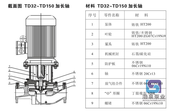 產品介紹 TD100-15/2 立式管道循環泵配有標準電機和機械密封。此類管道泵產品的結構與相近類型產品相比,更不易受到泵送液體中雜質的影響。 產品設計為頂部可拉出的拆裝形式,其可以在不影響管路系統的情況下對泵進行維護。 應用 產品適宜在清潔、稀薄、非侵蝕、非易爆易燃,且不含有任何可能對泵造成機械或化學損害的固體顆粒和纖維的液體中使用。具體對液體要求及應用如下;而在液體粘稠或密度較大情況下使用時會造成泵特性曲線的下降和能耗的增加。 液體溫度:-15℃~110℃ 系統最高壓力:常規型為PN12巴;特殊型為PN16巴。 TD100-15/2 立式管道循環泵產品在用于輸送水時,其可以用于生活用水、工業用水、冷卻系統用水和區域供熱系統的冷、熱用水。TD離心泵產品可以在以下位置使用: ·主循環泵 ·混合環路中的泵 ·鍋爐混流泵 ·燃氣冷凍機泵 ·部分流量過濾器泵 ·定壓系統用泵 ·生活熱水循環 ![]() ![]() ![]() 因產品生產批次、型號不同,產品圖片及安裝尺寸僅供參考,詳情可聯系我們的銷售人員了解更多TD100-15/2 立式管道循環泵相關信息!