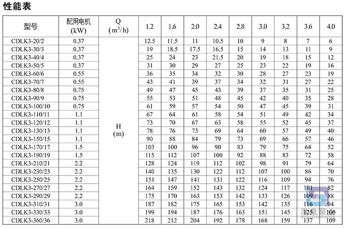 產品介紹 一、概述 CDLK3-190/19浸入式多級離心泵為安裝標準電機 為滿足水槽或容器的安裝深度,可安裝空腔體來改變泵本身的長度,不同的級數長度見尺寸和重量表和可供產品范圍表。 二、應用范圍 CDLK3-190/19液下式多級離心泵用于輸送機床冷卻液、潤滑液、冷凝水輸送、工業清洗設備和其它適合浸入式泵使用的場合,適合于不同溫度、流量和壓力范圍,CDLK適用于無腐蝕性液體,CDLKF適于輕度腐蝕性液體。 具體用于電火花、車床、磨床、加工中心、冷卻裝置、工業清洗設備、過濾系統等。 三、電機 電機為全封閉,風冷式二極標準電機。 防護等級:IP55 絕緣等級:F 標準電壓:50HZ:1*220-230/240V 3*200/346V 3*220-240/380-415V 3*220-225/380-440V 其他電壓的電機按要求可供。 單相電壓從0.37-2.2kw可供。 四、運行條件 適用于稀薄、干凈、不含固體顆粒和纖維的非易爆液體,可輸送水及冷卻用水溶液和切割潤滑液。 液體溫度:常溫型-15℃~+70℃ 熱水型+70℃~+120℃ ![]() ![]() 因產品生產批次、型號不同,產品圖片及安裝尺寸僅供參考,詳情可聯系我們的銷售人員了解更多CDLK3-190/19浸入式多級離心泵相關信息!
