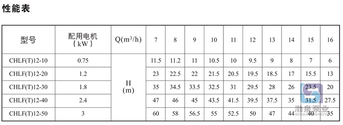 產(chǎn)品介紹 CHLF12-50LSWSC不銹鋼臥式多級(jí)離心泵配加長軸電機(jī)采用了免修機(jī)械密封,緊湊式結(jié)構(gòu)使泵尺寸很小,軸向入口和徑向出口。輕型段式多級(jí)離心泵的過流部件均采用不銹鋼材料(304或316)制成,輕型不銹鋼多級(jí)離心泵具有低噪音,耐輕腐蝕,外形美觀、體積小、重量輕、使用壽命長等特點(diǎn),不同材質(zhì)的硬質(zhì)合金密封,保證了不同介質(zhì)輸送均無泄漏;噪音低:兩個(gè)低噪音軸承下的水泵,運(yùn)轉(zhuǎn)平穩(wěn),除電機(jī)微弱聲響,基本無噪聲;故障率低:結(jié)構(gòu)簡單合理,整機(jī)無故障工作時(shí)間大大提高。采用國內(nèi)優(yōu)秀水力模型優(yōu)化設(shè)計(jì)而成,是理想的新一代高效節(jié)能輕型臥式多級(jí)離心泵。采用了免修機(jī)械密封。輕型段式多級(jí)離心泵的過流部件均采用不銹鋼材料(304或316)制成,具有低噪音,耐輕腐蝕,外形美觀、體積小、重量輕、使用壽命長等特點(diǎn)。 二、應(yīng)用范圍: 主要用于家庭型中央空調(diào)循環(huán)及工業(yè)上液體的傳輸。如脫礦物質(zhì)水、軟水、凈化系統(tǒng)、輕油等的循環(huán)和增壓。 1)小型中央空調(diào)循環(huán) 2)冷卻系統(tǒng) 3)工業(yè)清洗 4)水處理(水的凈化) 5)水產(chǎn)養(yǎng)殖 6)施肥/計(jì)量系統(tǒng) 7)環(huán)境應(yīng)用 三、工作條件: 稀薄、干凈、不凝、不爆炸、不含固體顆?;蚶w維的液體。 液體溫度: 常溫型-15℃至+70℃ 熱水型+70℃至+110℃ 最大環(huán)境溫度:+40℃ 最大運(yùn)作壓力:10巴 最大進(jìn)口壓力受最大運(yùn)作壓力限制 介質(zhì)酸堿性:PH4~9 四、輸送液體: 1、稀薄、清潔、不含固體顆粒或纖維的非易燃易爆液體。 2、泵可以輸送諸如礦泉水、軟化水、純水、清油和其它輕化工介質(zhì)。 3、當(dāng)輸送液體的密度或粘度大于水,如需要,必須配用大功率電機(jī)。 4、泵是否適用于某一特定液體由多種因素決定,其中最重要的是氯含量、PH值、溫度和溶濟(jì)、油的含量等。 五、曲線條件: 下述條件適用于后面所示性能曲線。 1、所有曲線都基于電機(jī)在恒速2900rpm的測(cè)量值。 2、曲線容差符合ISO9906,附錄A。 3、測(cè)試采用20℃不含空氣的水,運(yùn)動(dòng)粘度為1mm2/s。 4、泵的使用參照加粗曲線的性能范圍,以防流量過小產(chǎn)生過熱和流量過大使電機(jī)過載等。 六、電機(jī): 電機(jī)為全封閉,風(fēng)冷式二極電機(jī) 防護(hù)等級(jí):IP55 絕緣等級(jí):F 標(biāo)準(zhǔn)電壓, 50Hz: 1×220-240V 3×220-240V 380-415V ![]() 因產(chǎn)品生產(chǎn)批次、型號(hào)不同,產(chǎn)品圖片及安裝尺寸僅供參考,詳情可聯(lián)系我們的銷售人員了解更多CHLF12-50LSWSC不銹鋼臥式多級(jí)離心泵相關(guān)信息!