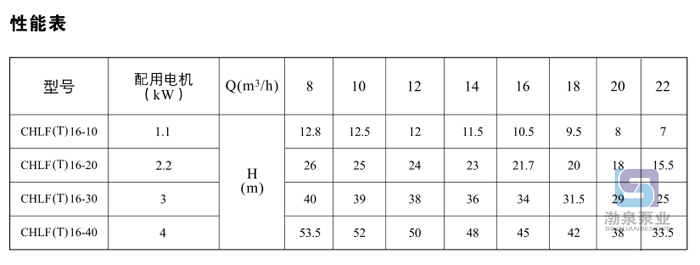 產品介紹 CHLF16-30LSWSC不銹鋼臥式多級離心泵配加長軸電機采用了免修機械密封,緊湊式結構使泵尺寸很小,軸向入口和徑向出口。輕型段式多級離心泵的過流部件均采用不銹鋼材料(304或316)制成,輕型不銹鋼多級離心泵具有低噪音,耐輕腐蝕,外形美觀、體積小、重量輕、使用壽命長等特點,不同材質的硬質合金密封,保證了不同介質輸送均無泄漏;噪音低:兩個低噪音軸承下的水泵,運轉平穩,除電機微弱聲響,基本無噪聲;故障率低:結構簡單合理,整機無故障工作時間大大提高。采用國內優秀水力模型優化設計而成,是理想的新一代高效節能輕型臥式多級離心泵。采用了免修機械密封。輕型段式多級離心泵的過流部件均采用不銹鋼材料(304或316)制成,具有低噪音,耐輕腐蝕,外形美觀、體積小、重量輕、使用壽命長等特點。 二、應用范圍: 主要用于家庭型中央空調循環及工業上液體的傳輸。如脫礦物質水、軟水、凈化系統、輕油等的循環和增壓。 1)小型中央空調循環 2)冷卻系統 3)工業清洗 4)水處理(水的凈化) 5)水產養殖 6)施肥/計量系統 7)環境應用 三、工作條件: 稀薄、干凈、不凝、不爆炸、不含固體顆粒或纖維的液體。 液體溫度: 常溫型-15℃至+70℃ 熱水型+70℃至+110℃ 最大環境溫度:+40℃ 最大運作壓力:10巴 最大進口壓力受最大運作壓力限制 介質酸堿性:PH4~9 四、輸送液體: 1、稀薄、清潔、不含固體顆?;蚶w維的非易燃易爆液體。 2、泵可以輸送諸如礦泉水、軟化水、純水、清油和其它輕化工介質。 3、當輸送液體的密度或粘度大于水,如需要,必須配用大功率電機。 4、泵是否適用于某一特定液體由多種因素決定,其中最重要的是氯含量、PH值、溫度和溶濟、油的含量等。 五、曲線條件: 下述條件適用于后面所示性能曲線。 1、所有曲線都基于電機在恒速2900rpm的測量值。 2、曲線容差符合ISO9906,附錄A。 3、測試采用20℃不含空氣的水,運動粘度為1mm2/s。 4、泵的使用參照加粗曲線的性能范圍,以防流量過小產生過熱和流量過大使電機過載等。 六、電機: 電機為全封閉,風冷式二極電機 防護等級:IP55 絕緣等級:F 標準電壓, 50Hz: 1×220-240V 3×220-240V 380-415V ![]() 因產品生產批次、型號不同,產品圖片及安裝尺寸僅供參考,詳情可聯系我們的銷售人員了解更多CHLF16-30LSWSC不銹鋼臥式多級離心泵相關信息!