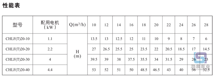 產(chǎn)品介紹 CHLF20-30LSWSC輕型臥式多級(jí)離心泵配加長(zhǎng)軸電機(jī)采用了免修機(jī)械密封,緊湊式結(jié)構(gòu)使泵尺寸很小,軸向入口和徑向出口。輕型段式多級(jí)離心泵的過(guò)流部件均采用不銹鋼材料(304或316)制成,輕型不銹鋼多級(jí)離心泵具有低噪音,耐輕腐蝕,外形美觀、體積小、重量輕、使用壽命長(zhǎng)等特點(diǎn),不同材質(zhì)的硬質(zhì)合金密封,保證了不同介質(zhì)輸送均無(wú)泄漏;噪音低:兩個(gè)低噪音軸承下的水泵,運(yùn)轉(zhuǎn)平穩(wěn),除電機(jī)微弱聲響,基本無(wú)噪聲;故障率低:結(jié)構(gòu)簡(jiǎn)單合理,整機(jī)無(wú)故障工作時(shí)間大大提高。采用國(guó)內(nèi)優(yōu)秀水力模型優(yōu)化設(shè)計(jì)而成,是理想的新一代高效節(jié)能輕型臥式多級(jí)離心泵。采用了免修機(jī)械密封。輕型段式多級(jí)離心泵的過(guò)流部件均采用不銹鋼材料(304或316)制成,具有低噪音,耐輕腐蝕,外形美觀、體積小、重量輕、使用壽命長(zhǎng)等特點(diǎn)。 二、應(yīng)用范圍: 主要用于家庭型中央空調(diào)循環(huán)及工業(yè)上液體的傳輸。如脫礦物質(zhì)水、軟水、凈化系統(tǒng)、輕油等的循環(huán)和增壓。 1)小型中央空調(diào)循環(huán) 2)冷卻系統(tǒng) 3)工業(yè)清洗 4)水處理(水的凈化) 5)水產(chǎn)養(yǎng)殖 6)施肥/計(jì)量系統(tǒng) 7)環(huán)境應(yīng)用 三、工作條件: 稀薄、干凈、不凝、不爆炸、不含固體顆?;蚶w維的液體。 液體溫度: 常溫型-15℃至+70℃ 熱水型+70℃至+110℃ 最大環(huán)境溫度:+40℃ 最大運(yùn)作壓力:10巴 最大進(jìn)口壓力受最大運(yùn)作壓力限制 介質(zhì)酸堿性:PH4~9 四、輸送液體: 1、稀薄、清潔、不含固體顆粒或纖維的非易燃易爆液體。 2、泵可以輸送諸如礦泉水、軟化水、純水、清油和其它輕化工介質(zhì)。 3、當(dāng)輸送液體的密度或粘度大于水,如需要,必須配用大功率電機(jī)。 4、泵是否適用于某一特定液體由多種因素決定,其中最重要的是氯含量、PH值、溫度和溶濟(jì)、油的含量等。 五、曲線條件: 下述條件適用于后面所示性能曲線。 1、所有曲線都基于電機(jī)在恒速2900rpm的測(cè)量值。 2、曲線容差符合ISO9906,附錄A。 3、測(cè)試采用20℃不含空氣的水,運(yùn)動(dòng)粘度為1mm2/s。 4、泵的使用參照加粗曲線的性能范圍,以防流量過(guò)小產(chǎn)生過(guò)熱和流量過(guò)大使電機(jī)過(guò)載等。 六、電機(jī): 電機(jī)為全封閉,風(fēng)冷式二極電機(jī) 防護(hù)等級(jí):IP55 絕緣等級(jí):F 標(biāo)準(zhǔn)電壓, 50Hz: 1×220-240V 3×220-240V 380-415V ![]() 因產(chǎn)品生產(chǎn)批次、型號(hào)不同,產(chǎn)品圖片及安裝尺寸僅供參考,詳情可聯(lián)系我們的銷售人員了解更多CHLF20-30LSWSC輕型臥式多級(jí)離心泵相關(guān)信息!