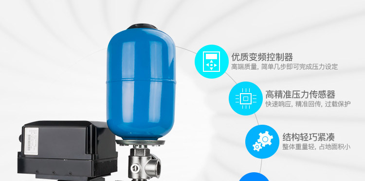 4、能夠在家庭電壓220V的環(huán)境中使用,解決了普通恒壓變頻增壓泵不能在220V中不能運行的缺點,使用方便