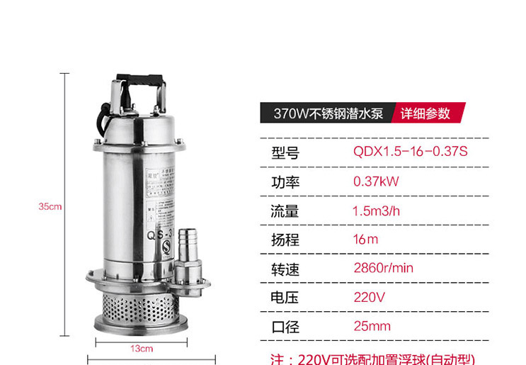 QDX1.5-16-0.37S防腐蝕耐酸堿化工泵是一款采用精密鑄造耐輸送高溫度介質(zhì)(高溫型介質(zhì)溫度可達(dá)120℃)、安裝移動(dòng)方便、多種保護(hù)、可靠性高等特點(diǎn)的一款潛水電泵。是深受國內(nèi)外廣大用戶歡迎的質(zhì)量穩(wěn)定使用壽命長(zhǎng)的一款潛水泵。 產(chǎn)品概述: 1、QDX1.5-16-0.37S防腐蝕耐酸堿化工泵整體采用不銹鋼精密鑄造,耐腐蝕,環(huán)保型,外形美觀,體積小,經(jīng)久耐用。 2、采用氟橡膠雙端面機(jī)封,氟橡膠徑向O型圈密封,有效地對(duì)環(huán)境惡劣的液體進(jìn)行密封保護(hù)作用。 3、電機(jī)采用F級(jí)絕緣,裝有熱保護(hù)裝置,大大延長(zhǎng)了泵的使用壽命。 4、可根據(jù)客戶特殊要求定制防腐蝕電纜線、四氟機(jī)封,及高溫液體的零件配置。 5、采用不銹鋼閉式?jīng)_壓焊接葉輪,大大提高了揚(yáng)程。 使用條件: 1、電泵潛入水下深度不超過5m。 2、輸送介質(zhì)溫度不超過60℃。 3、輸送介質(zhì)的PH值304(4-10), 316(2-13)。 4、輸送介質(zhì)中含固體顆粒直徑不大于0.2mm,體積不超過0.1%。 主要用途: 適用于工礦企業(yè)、食品行業(yè)、海水養(yǎng)殖、景觀工程、深井提水、農(nóng)田灌溉等一般腐蝕性介質(zhì)。 ![]() ![]() ![]() ![]() ![]()