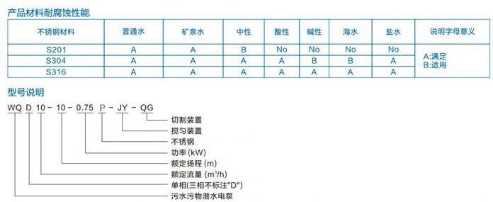 ![]() ![]() 不銹鋼防爆潛水排污泵QWP80-40-7-2.2產(chǎn)品概述/Product Overview 1.國(guó)標(biāo)法蘭WQ(D)-S不銹鋼精密鑄造污水污物潛水電泵采用不銹鋼精密鑄造外殼,具有耐腐蝕,環(huán)保型,揚(yáng)程高,流量大等特點(diǎn)。 2.油室采用氟橡膠雙面機(jī)械密封,外室采用單面氟橡膠機(jī)械油封結(jié)構(gòu),有效地減少因骨架油封與軸之間摩擦而造成的密封進(jìn)水問(wèn)題。 3.電機(jī)采用高溫線,F(xiàn)級(jí)絕緣,熱保護(hù)裝置,有效地延長(zhǎng)泵的使用壽命。 4.根據(jù)客戶的要求,可帶攪勻裝置,該裝置隨電機(jī)軸旋轉(zhuǎn)產(chǎn)生極強(qiáng)的攪拌力,將污水池內(nèi)的沉積物拌成懸浮物后排出。也可帶切割裝置,能將污水中的長(zhǎng)纖維,塑料,紙袋,稻草等雜物碎片后排出。 主要用途/The Main Purpose 不銹鋼耐腐蝕排污泵適用于建筑樓宇、醫(yī)院、住宅小區(qū)、市政工程、道路交通及施工、工廠排污、養(yǎng)殖、藥業(yè)、飲料、海水鹽水、一般腐蝕性介質(zhì)中含有的固體顆粒、長(zhǎng)纖維廢水、污水。 使用條件/Conditions Of Use 1.以葉輪中心為準(zhǔn),潛入水下深度不得超過(guò)5m; 2.輸送介質(zhì)溫度不高于60C ; 3.輸送介質(zhì)的PH值304(4-10),316(4-13); 4.輸送介質(zhì)的運(yùn)動(dòng)黏度為7x 10~~23 x 10"m?/S 產(chǎn)品材料耐腐蝕性能詳情請(qǐng)參考P36-38 ![]() ![]()