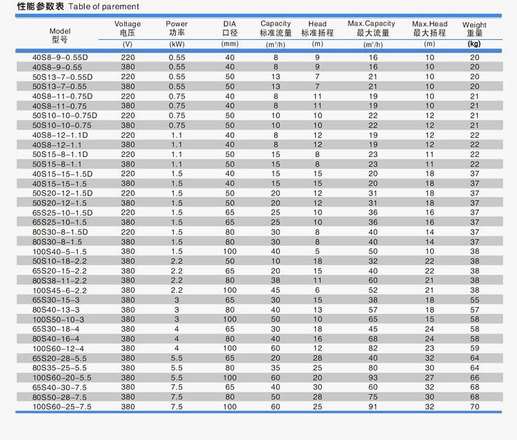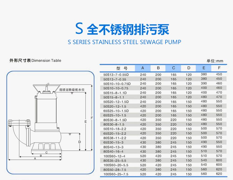 | 50S10-10-0.75耐腐耐酸堿304不銹鋼潛水排污泵 | ||||||||||||||||