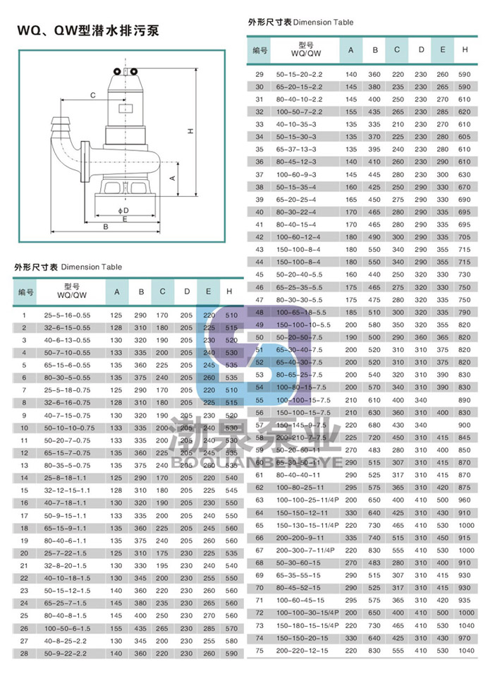 耐高溫排污泵WQR系列型號50WQR10-10-0.75 流量:10立方/小時(shí) 揚(yáng)程:10米 功率:0.75千瓦 材質(zhì):鑄鐵(可生產(chǎn)不銹鋼材質(zhì)) 耐溫100度。具有抽送介質(zhì)溫度高、安裝移動(dòng)方便、高效節(jié)能、防纏繞、無堵塞等特點(diǎn)??捎糜谳斔秃畚?、固體顆粒、纖維的高溫液體介質(zhì)。 主要用途: 1、市政工程、建筑工地。 2、城市污水處理排放系統(tǒng)。 3、企業(yè)、單位廢水排放。 4、住宅區(qū)的污水排放,. 5、地鐵、地下室、人防工程, 6、醫(yī)院、賓館、高層建筑污水排放。 7、自來水廠、水利工程等。 8、養(yǎng)殖場、化糞池。 9、電廠、鋼鐵廠抽送熱水。