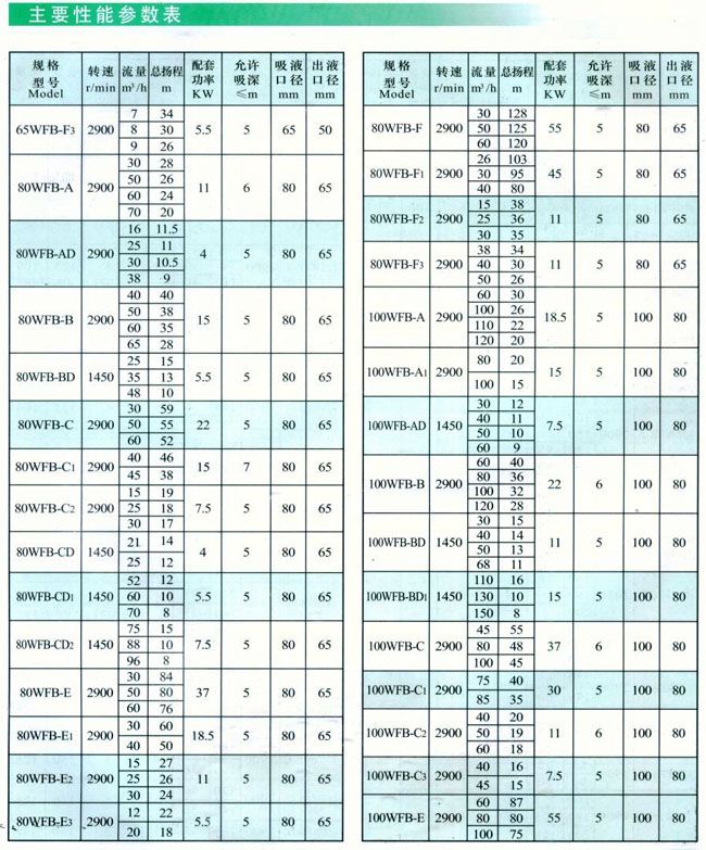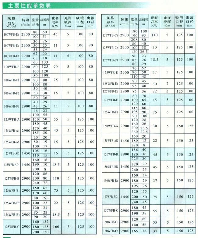 揚程范圍: 20-133 m