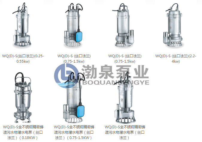 WQ(D)-S全不銹鋼精密鑄造污水物潛水電泵(絲口法蘭)