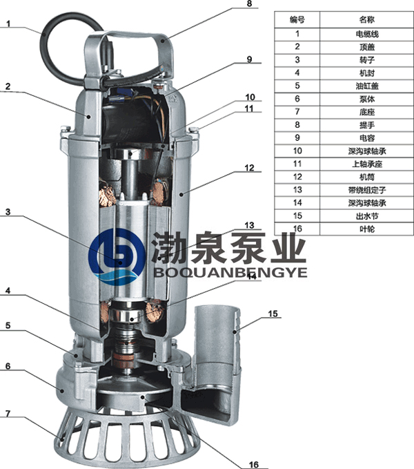 3、采用精密鑄造泵殼,重量輕、耐腐蝕、節(jié)能型、外形美觀、檢修方便,無(wú)需建泵房,潛入水中即可工作,減少工程造價(jià)。