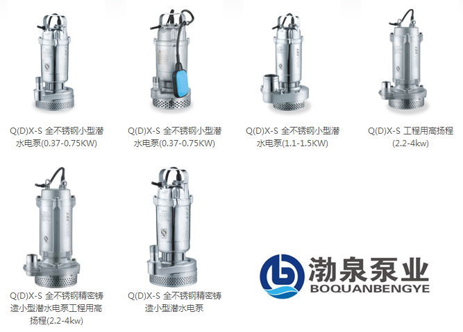 Q(D)X-S全不銹鋼小型潛水電泵是一款采用精密鑄造耐輸送高溫度介質(zhì)(高溫型介質(zhì)溫度可達(dá)120℃)、安裝移動(dòng)方便、多種保護(hù)、可靠性高等特點(diǎn)的一款潛水電泵。是深受國(guó)內(nèi)外廣大用戶歡迎的質(zhì)量穩(wěn)定使用壽命長(zhǎng)的一款潛水泵。